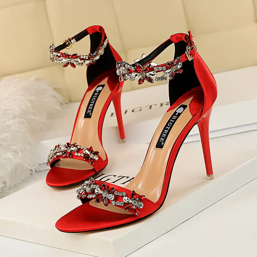 2026 Summer Suede Women's Ankle Strap Sandals Sexy High Heel Open Rhinestone Slides Pointed EVA Trendy Fashion for Spring